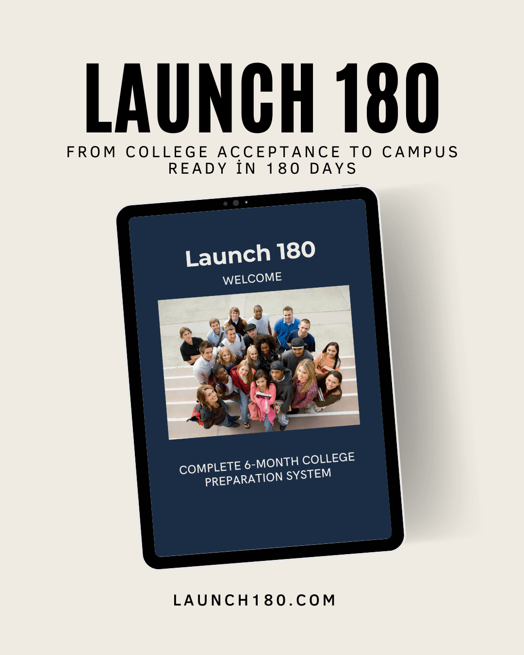 Launch180 is a complete 6-month college preparation system that builds the emotional, practical, social, and financial skills students need to not just survive college — but genuinely thrive there.